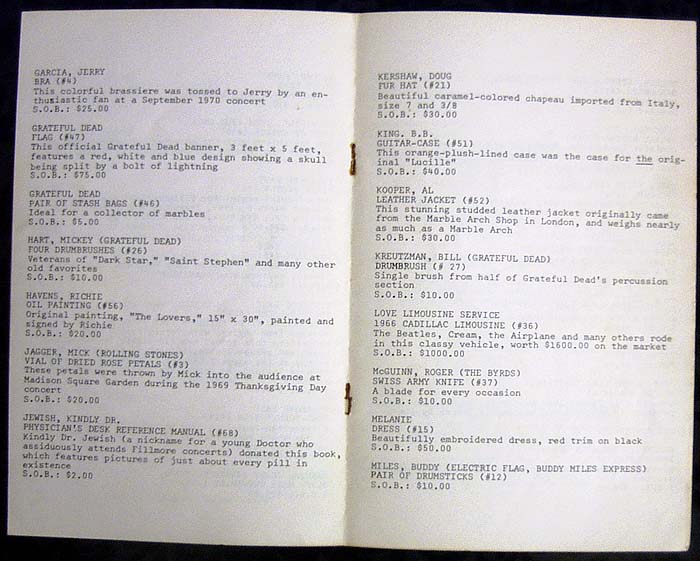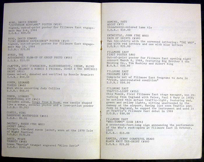 "Rock Relics Auction Show", where the Fillmore East Program Collection